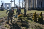 Після озеленення настоятель храму о. Тарас Дзьоба разом із учасниками помолилися, просячи у Господа, щоб ця праця увінчалася успіхом і благословили насаджені дерева свяченою водою.