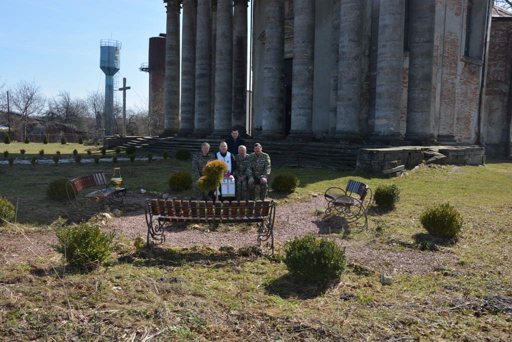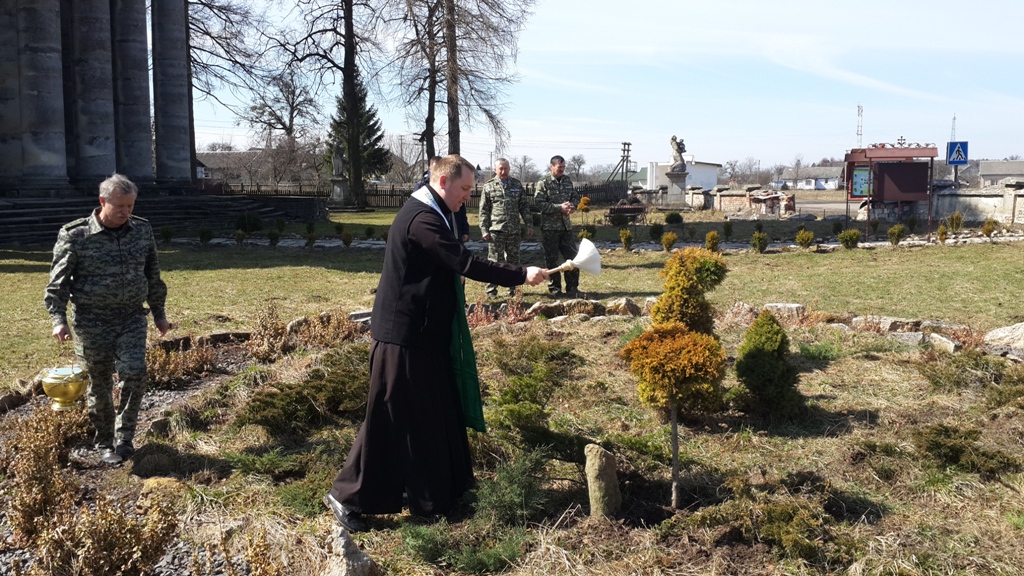 Після озеленення настоятель храму о. Тарас Дзьоба разом із учасниками помолилися, просячи у Господа, щоб ця праця увінчалася успіхом і благословили насаджені дерева свяченою водою.