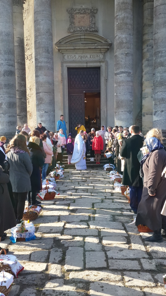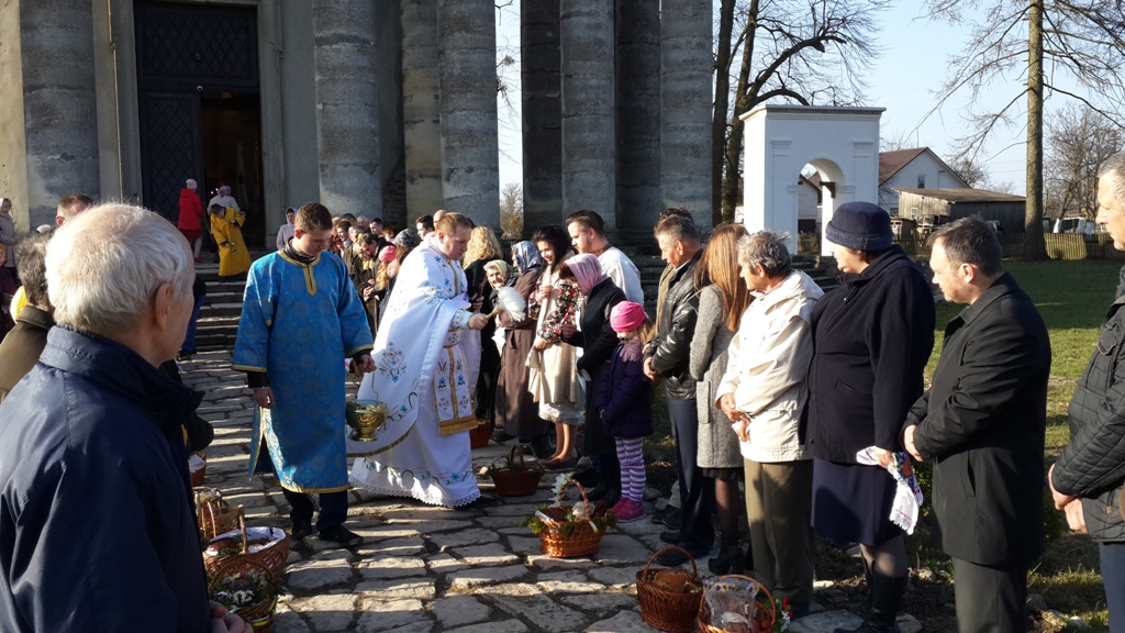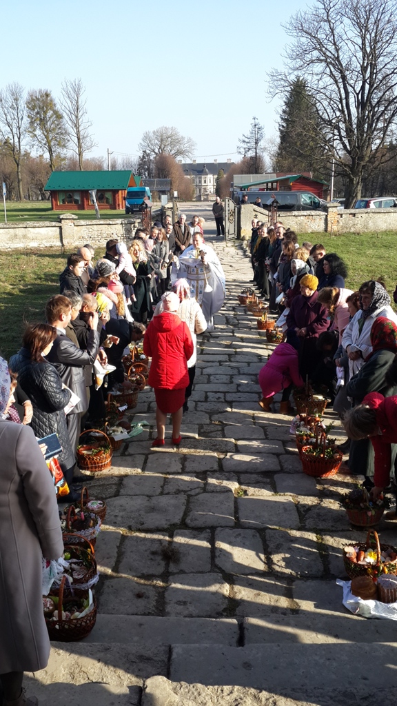 Згадуючи дію персонажів святкового Євангелія від Івана, о.Тарас подякував п.Лесі Ковалець і Лідії Сумик, що вже не перший раз їхня жертовна праця прикрашає служіння у Божому храму.