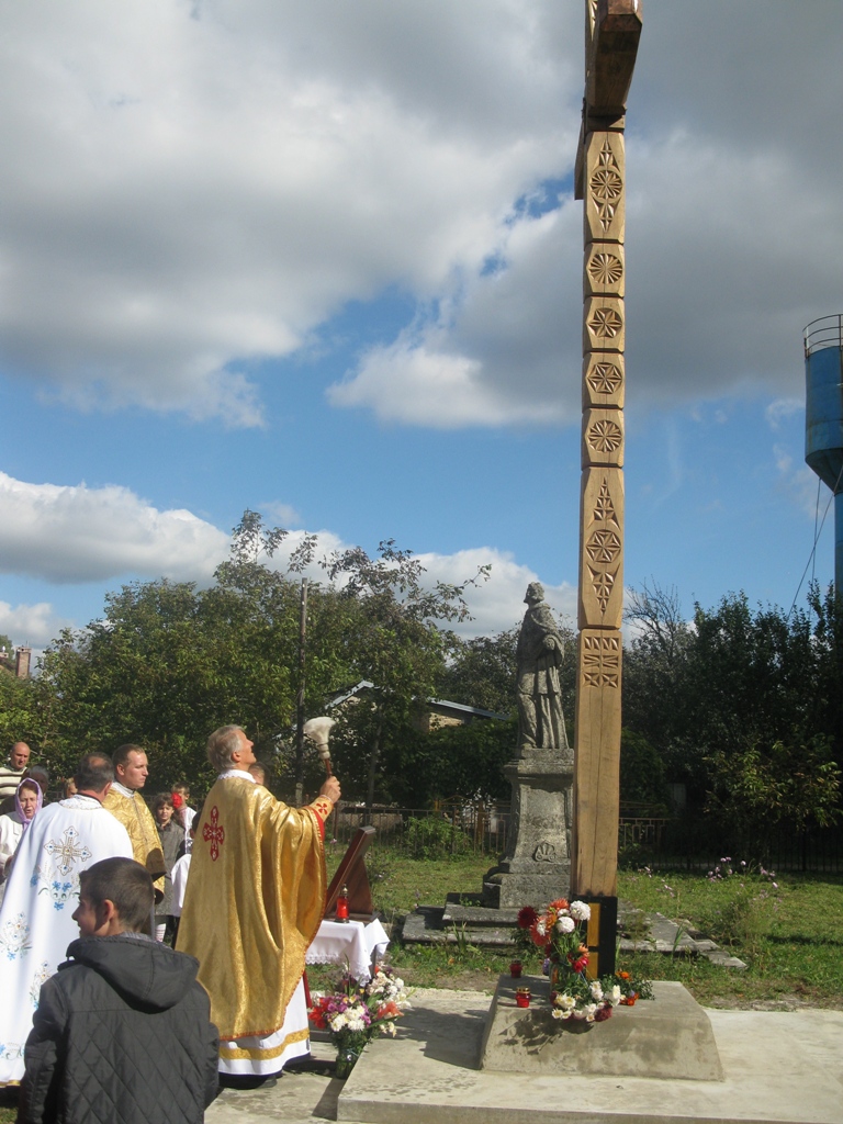 Після Літургії відбувся чин посвячення хреста, який спорудили поруч із храмом з нагоди ювілею виходу Церкви з підпілля: «Відновили на цьому місці святий хрест, а церква ваша ще в руїні. Проте цей хрест є символом відродження церкви в Підгірцях, церкви - як спільноти вірних, і церкви - як дому Божого, адже з поставленням хреста розпочнеться і відновлення цього зруйнованого храму», - звернувся до вірних у своєму слові отець-декан Богдан Вихор.