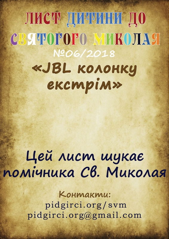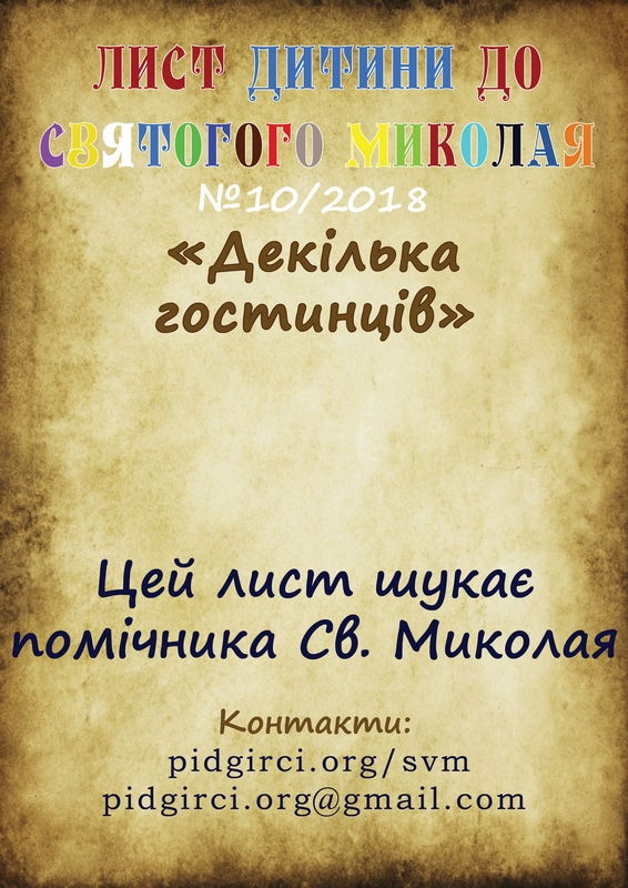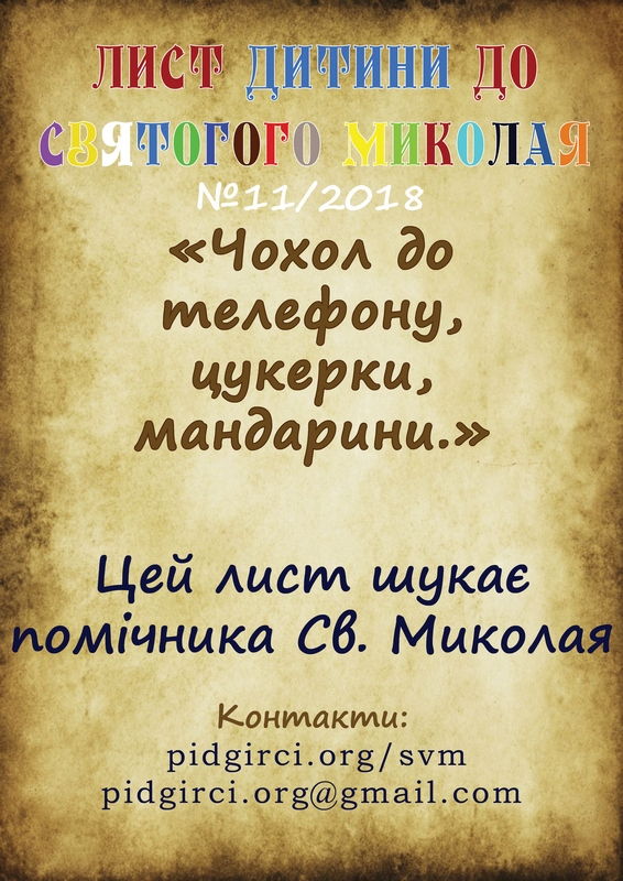 Post Scriptum: Окрім листа Ви можете долучитися солодощами та фруктами, яким завжди раді діти.