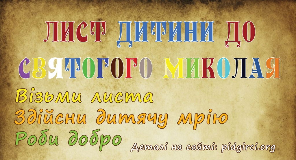 Запрошуємо Вас стати помічником Св. Миколая і здійснити дитячу мрію. Чинити добро іншим - означає продовжувати благородну справу Св. Миколая.